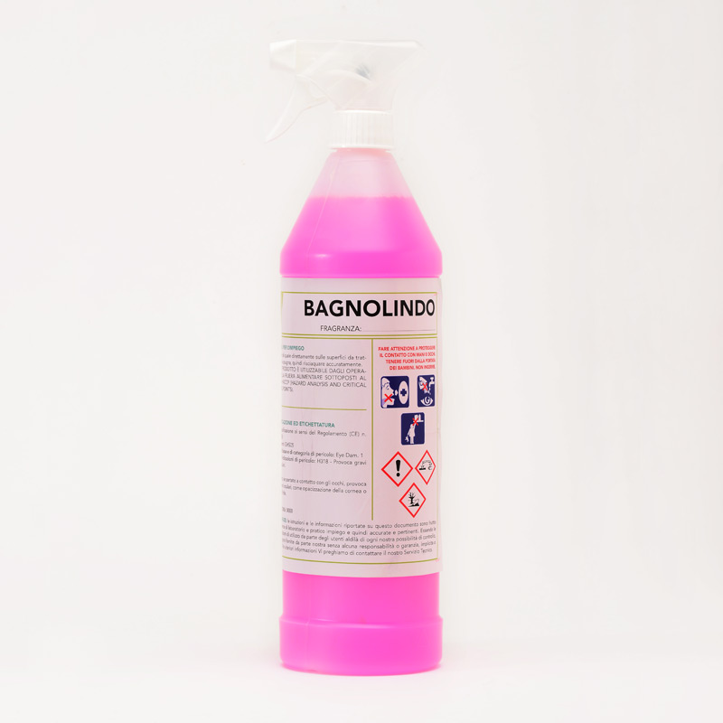 Detergente ad azione disincrostante giornaliera, indicato per la pulizia di tutte le superfici del bagno, sanitari, pavimenti e rivestimenti.